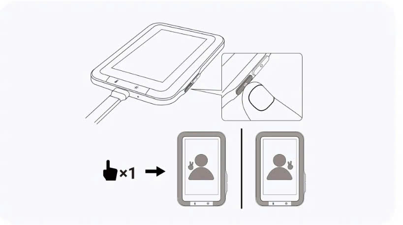 Nút Nguồn (Power Button) Bật/Tắt nguồn (Power On/Off) – Ngoài việc bật/tắt nguồn màn hình selfie bằng cách kết nối/ngắt kết nối cáp USB-C, bạn cũng có thể nhấn trực tiếp nút nguồn để bật/tắt.
