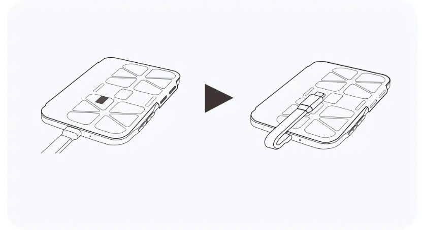 Khi không sử dụng, hãy cất giữ màn hình selfie như hình minh họa để tránh đầu cáp va đập vào màn hình. Tránh làm rơi màn hình selfie hoặc để nó chịu tác động mạnh và bề mặt cứng, vì điều này có thể gây hư hỏng.
