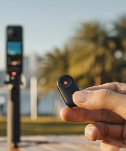Insta360 Mini Remote giúp điều khiển máy quay từ khoảng cách lên đến 10m. Tương thích với gậy selfie 2 trong 1 có thể gập lại (ngàm 1/4″) để quay phim khi đang di chuyển.